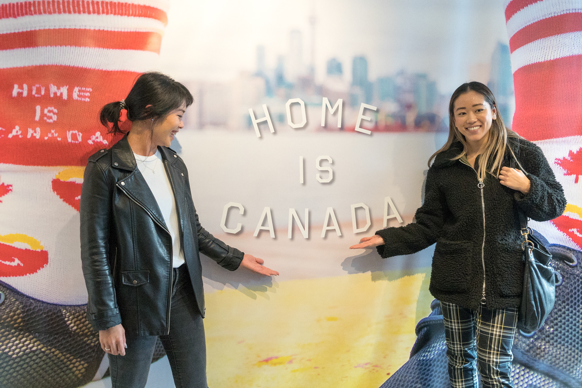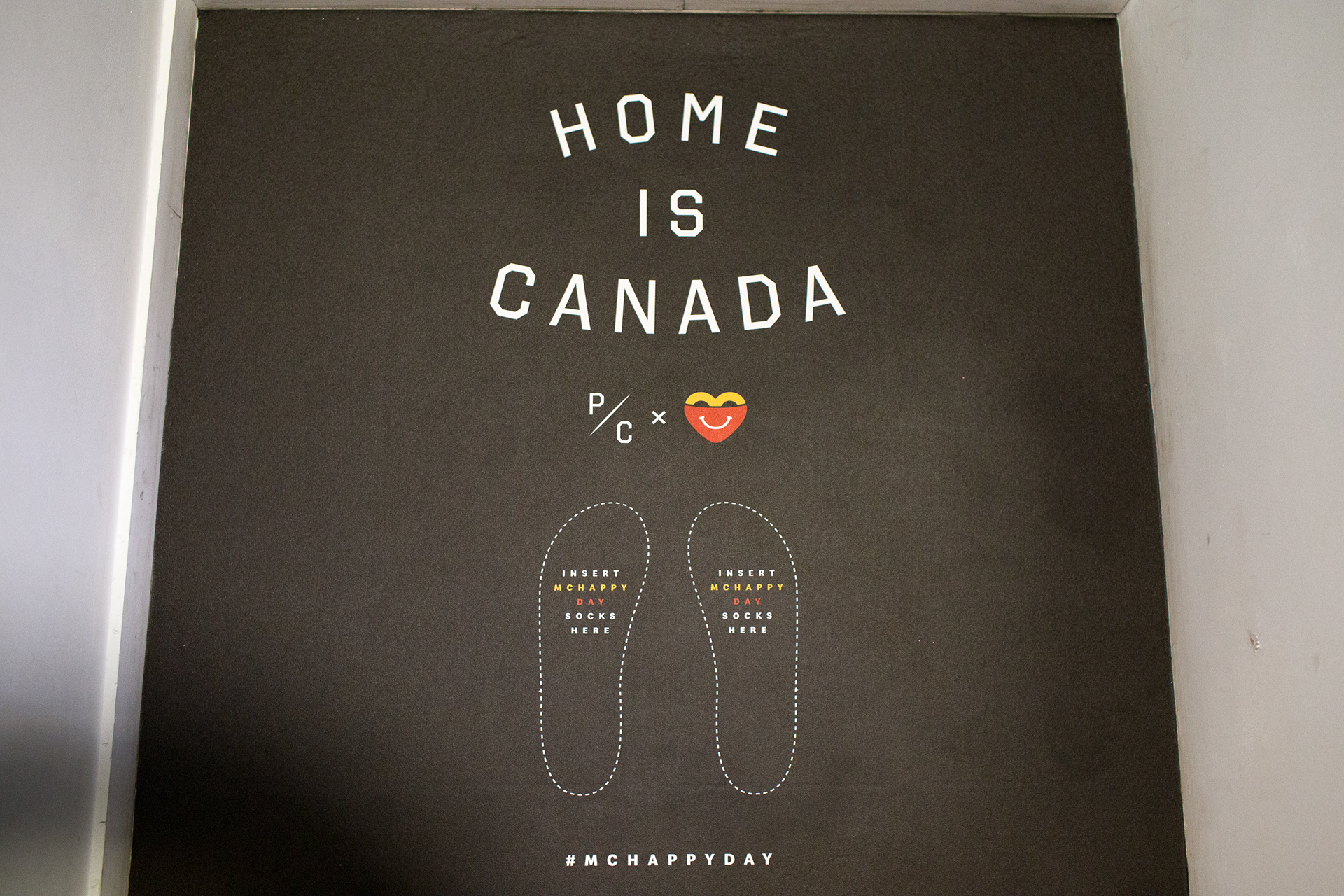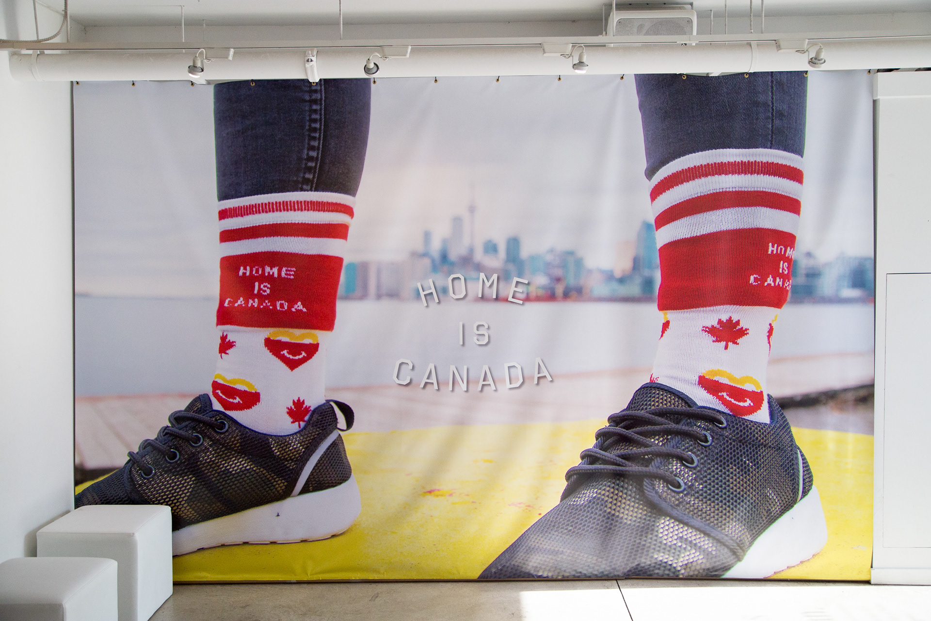 Guests were also encouraged to try on socks and take photos with the "Home is Canada" floor decal.